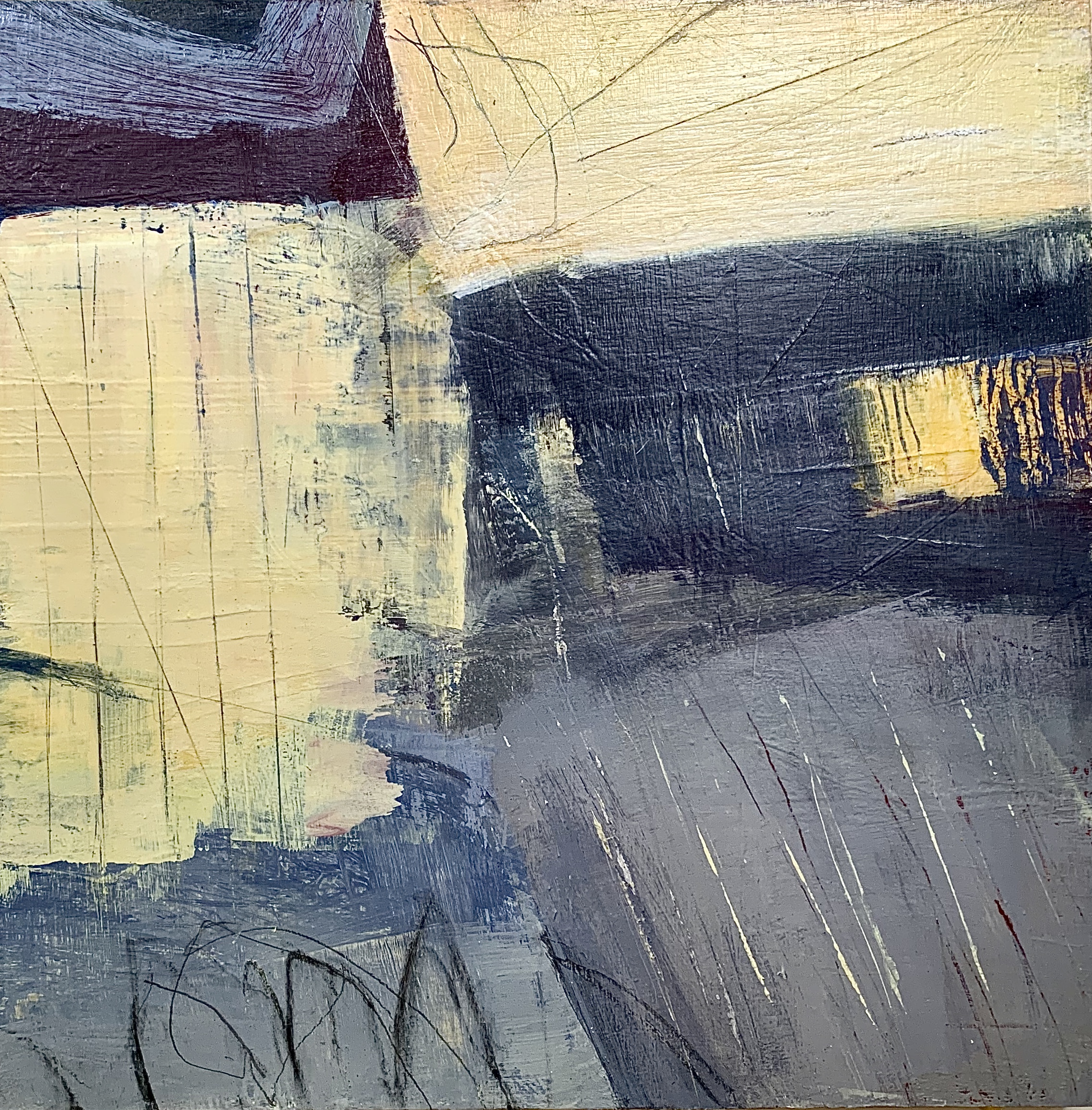 This 12x12 abstract painting is filled with light. It reminded me of walking in corridors toward a distant opening full of sunlight. It is framed in an elegant wooden frame.