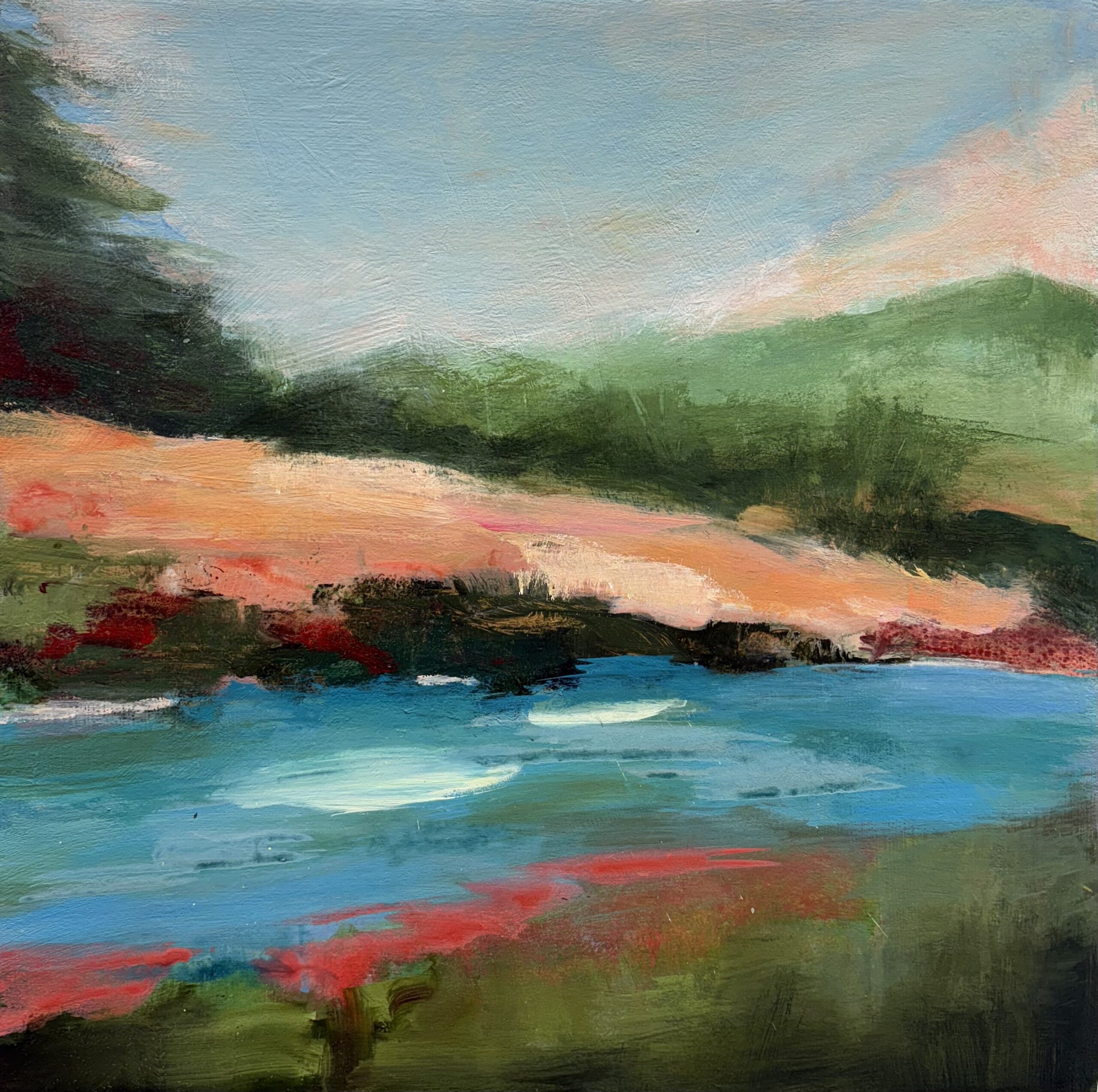 This acrylic painting on panel feels like the essence of the natural world--lush, bountiful, filled with light. As every year passes, I am more and more in love with the world! The painting is in a simple wooden floater frame.