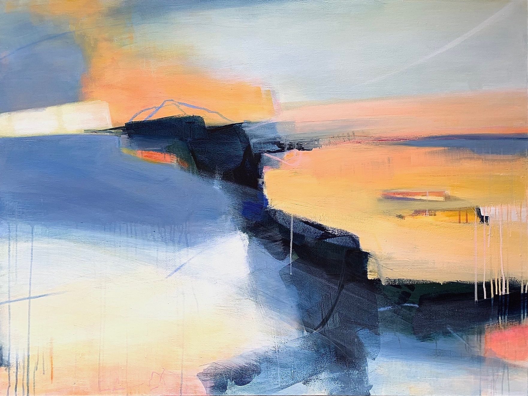 This large abstract landscape is full of movement and striking colors. It reminded me of the sweeping movement of bird wings. It is 36 x 48 inches, sealed and varnished.