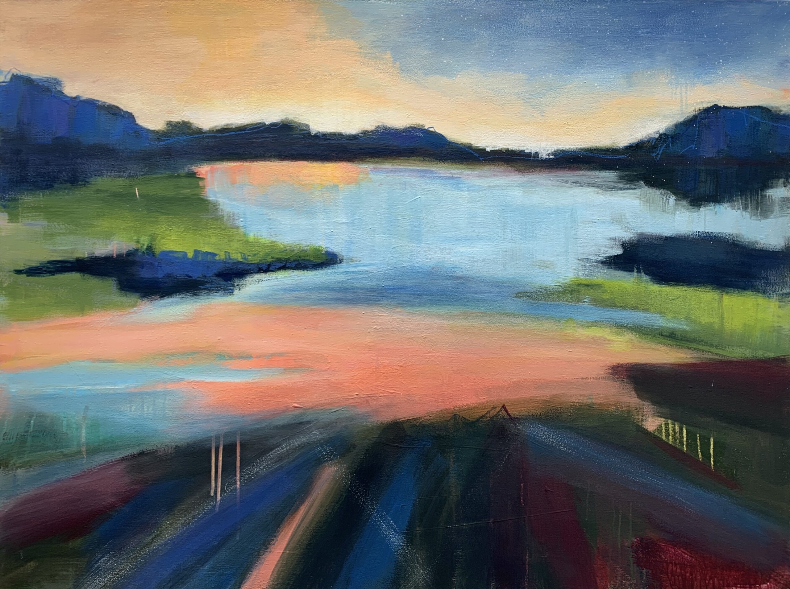 Looking our across the waters of a large lake, the sky turned pink and orange as the sun set, reminding me of something feverish--a feverish sky.