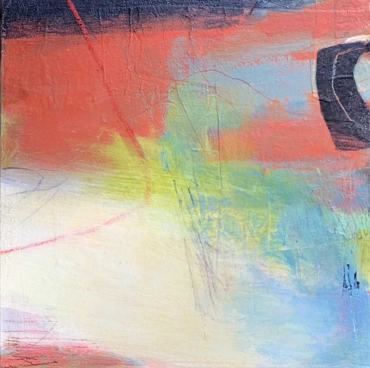 This framed, 12x12 mixed media painting reminded me of the mystery of an eclipse: the dark shadow traveling across the light, temporary yet powerful. Even in a total eclipse, there is a thin halo of light reminding us that the brightness can be obscured, but it is still always there.